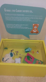 De l'autre, il y avait un grand sablier pour prendre conscience du temps qui s'écoule. Mini panda connaissait déjà, mais en voir un aussi grand a eu l'air de lui faire prendre conscience de façon plus concrète du temps qui passe à chaque instant. Et enfin, sur le dernier côté, il y avait une boîte aux lettres dans laquelle nous pouvions glisser des mots ( ou des dessins ) sur ce qui nous faisait peur dans le fait de grandir. Nous avons joué le jeu et écrit nos petits mots tout les deux :). A cet endroit d'ailleurs, mini panda a souhaité entamer son petit livret qui nous avait été donner à l'entrée. Il n'a pas tout fait, car certaines choses ne lui donnaient pas envie, mais il a fait 70% du petit livret.